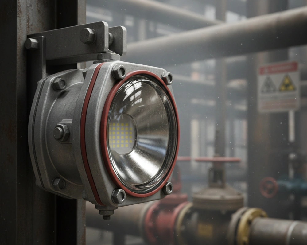 Gasket dan seal adalah bagian penting yang menjaga lampu anti ledak tetap tertutup rapat. Jika seal mulai getas, retak, atau berubah bentuk, risiko masuknya debu, uap kimia, atau gas mudah terbakar meningkat drastis. Inspeksi visual rutin membantu memastikan seal tetap elastis dan tidak menunjukkan tanda-tanda degradasi. Langkah sederhana ini mampu mencegah banyak potensi bahaya di area berisiko tinggi.